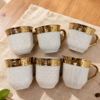 Electroplated Ceramic Wedding Arab Middle Eastern European Custom Coffee Cups Royking White Flower Set of 6 Coffee Cups