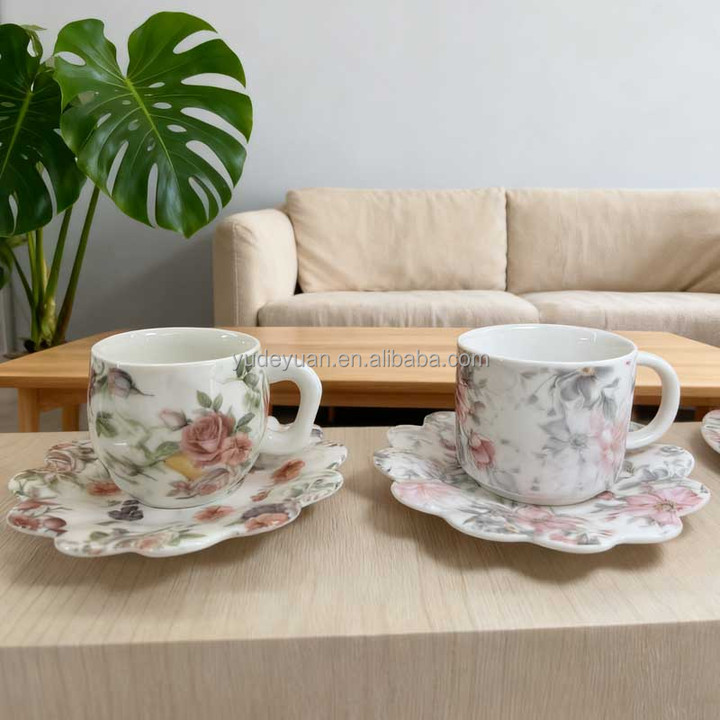 YDY Factory Luxury New Bone China all'ingrosso moderno personalizzato personalizzato stampa floreale sfuso tazze da caffè personalizzato tazza di tè piattino Set