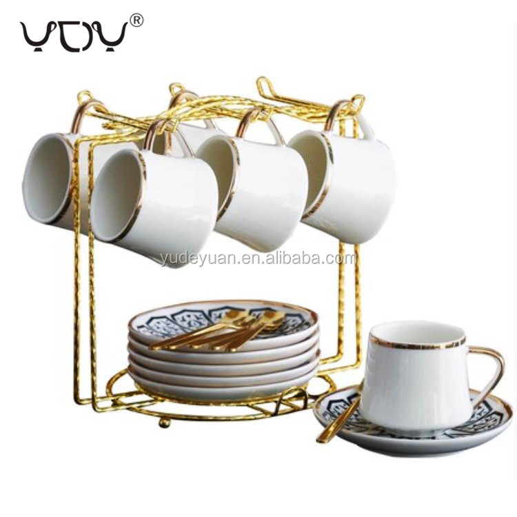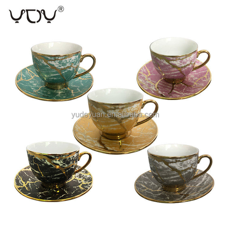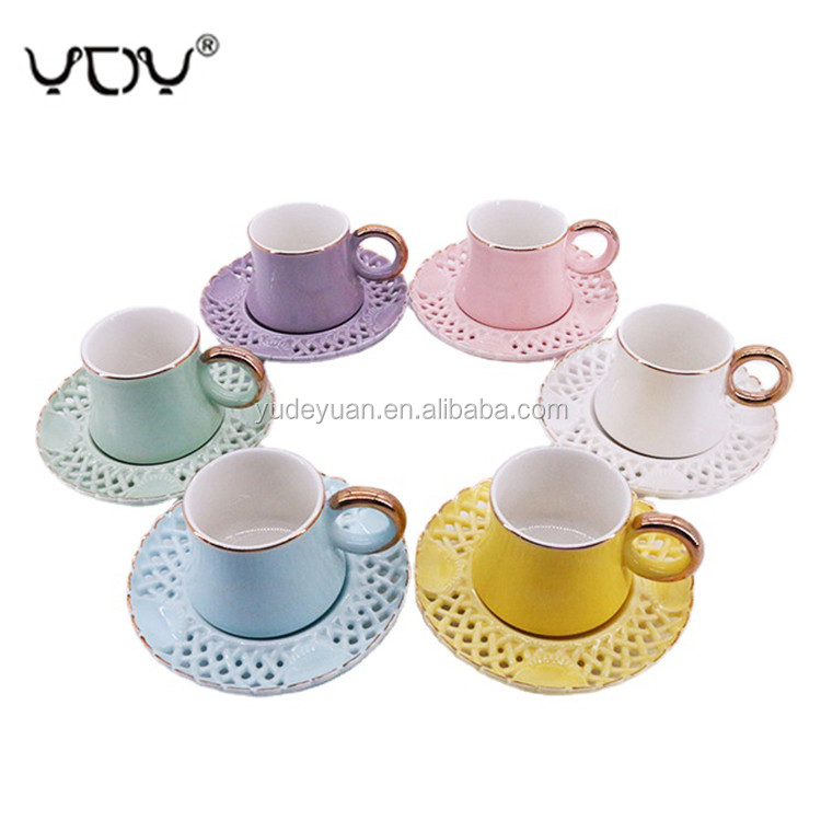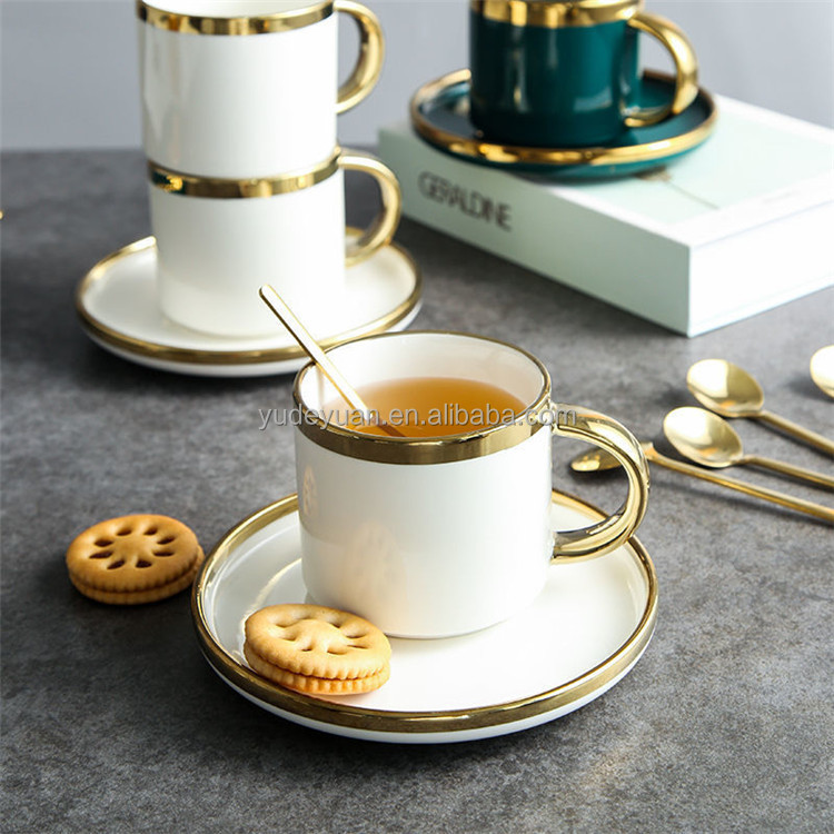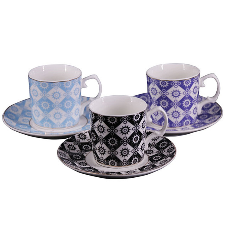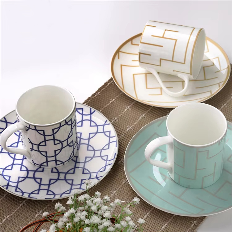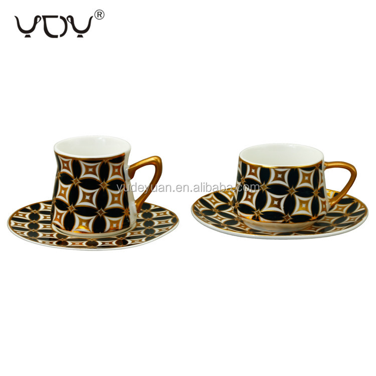 Fabriek Goedkope Groothandel Fijn Porselein Op Maat Bedrukt Ontwerp Gouden Rand Keramische Arabische 90cc Gepersonaliseerde Theekop Schotel Set
