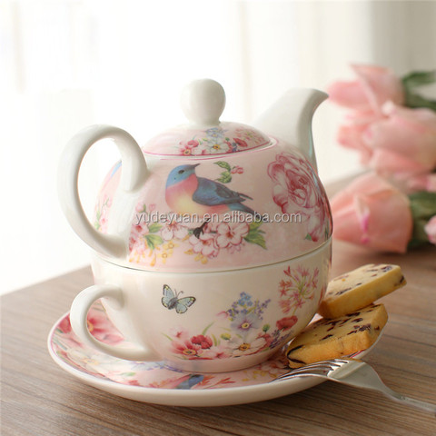 Ydy Fabriek Groothandel Goedkope Royal Nieuwe Bone 3Pcs Keramische Bloemen Thee Pot Sets