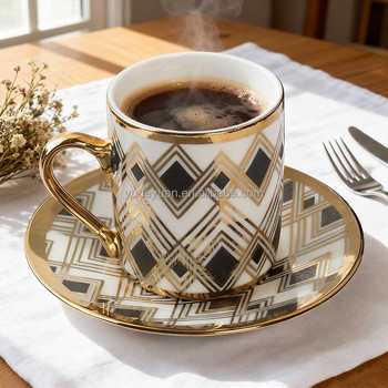 Fabrika ucuz toptan ince porselen özel baskılı tasarım altın jant seramik arapça 90cc kişiselleştirilmiş çay bardağı fincan tabağı seti